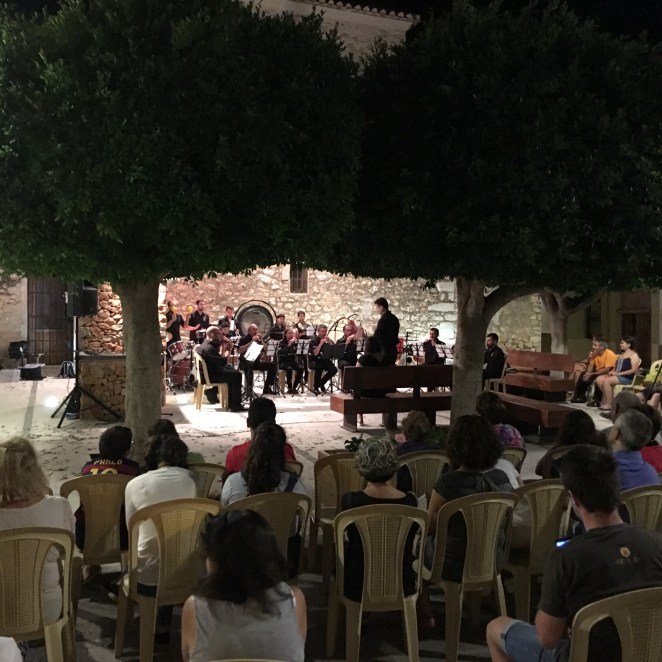 I really love all the locals. Just say “Holá , Buenos Dias” to them and they respond with a smile and reciprocate ( often in Catalan. Bon Dia, anyone? ) I love them and they love me. Two days after I arrived they even threw a concert for me in the square outside my front door. Well that was how I interpreted the situation 😀 They even offered a glass of wine and a slice of cake at the end.